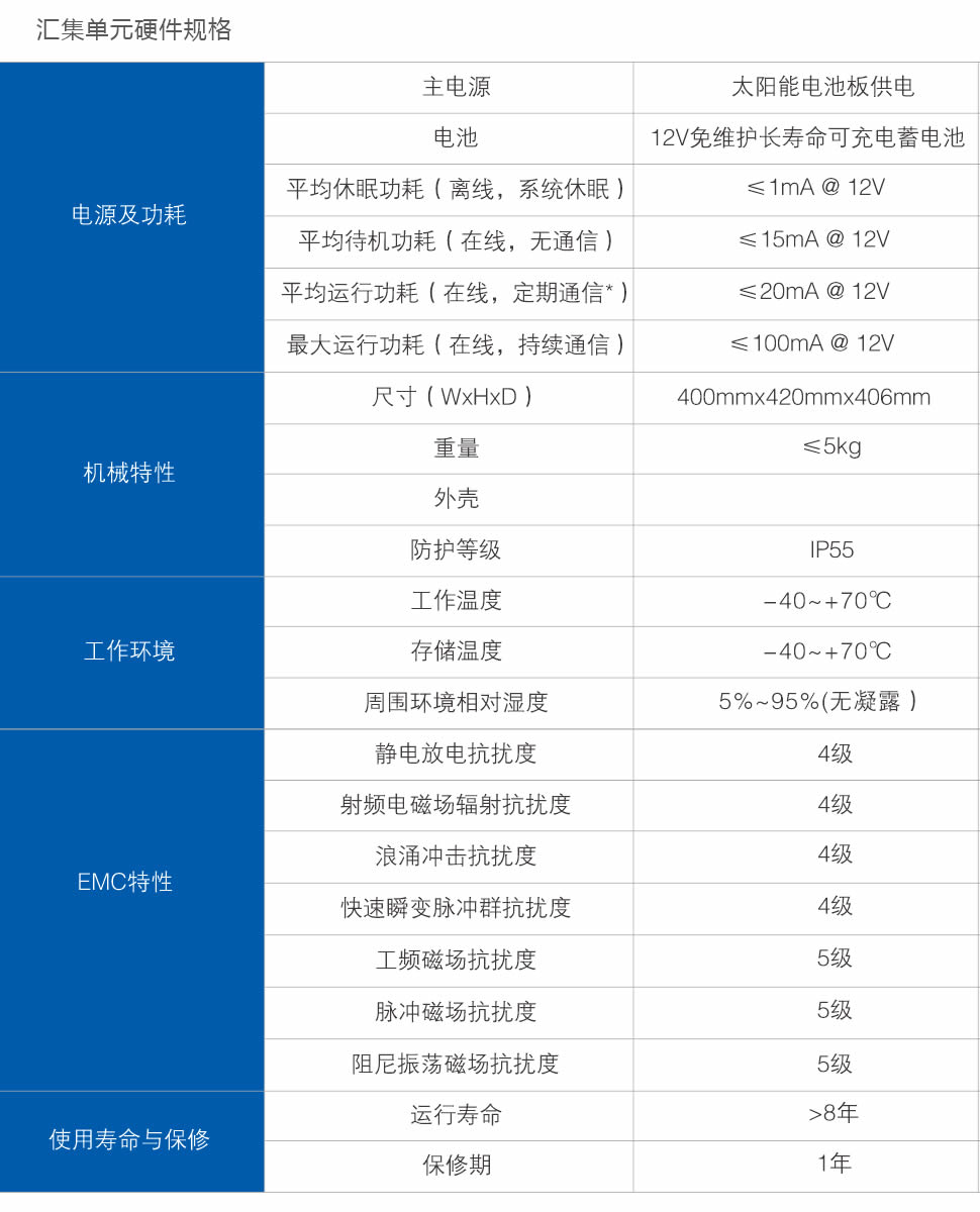 ◆高可靠電源系統(tǒng),太陽能和免維護(hù)蓄電池主備供電