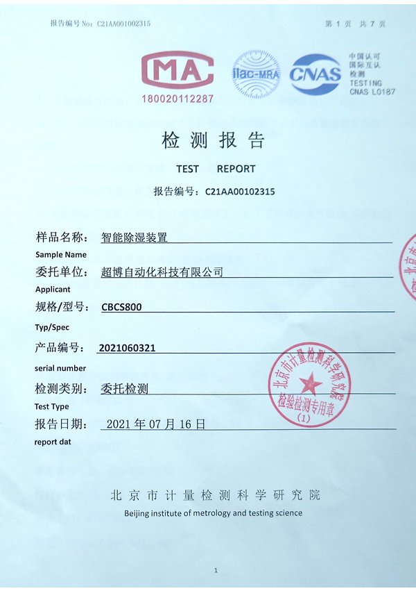 智能除濕裝置檢測報(bào)告
