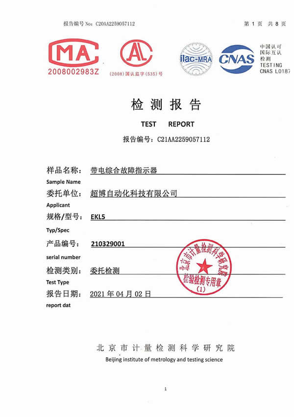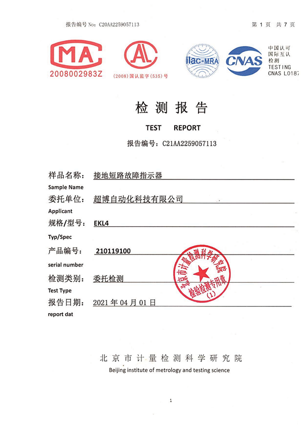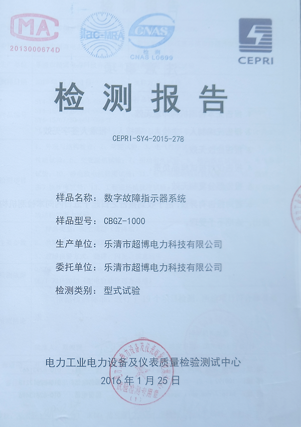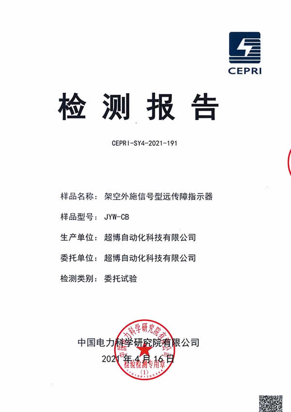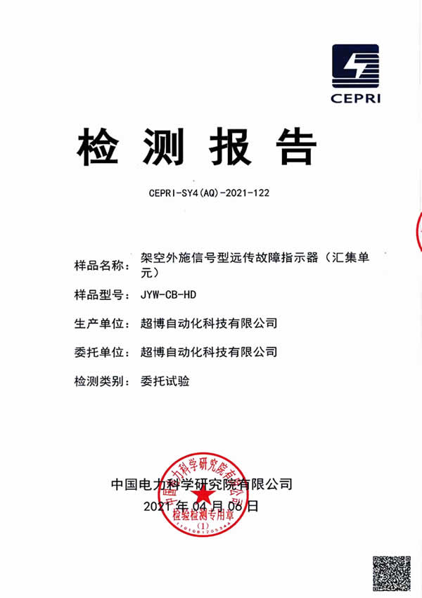 架空外施信號型遠(yuǎn)傳故障指示器檢驗(yàn)報(bào)告