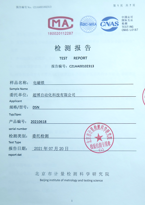 電磁鎖檢測報(bào)告
