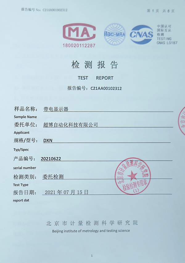 帶電顯示器DXN檢測報(bào)告