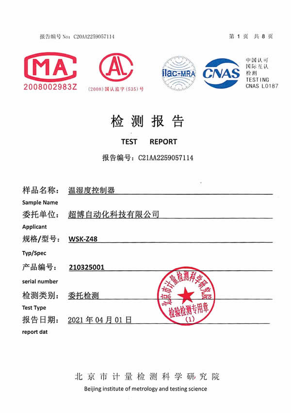 溫濕度控制器檢測報(bào)告